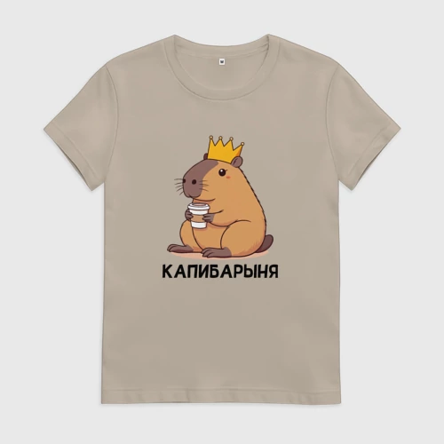 Капибарыня капибара с короной пьет кофе 👕 Детская футболка хлопок