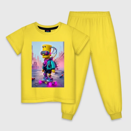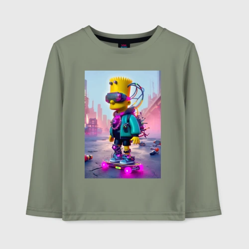 Барт Симпсон на скейтборде - киберпанк 👕 Детская футболка хлопок