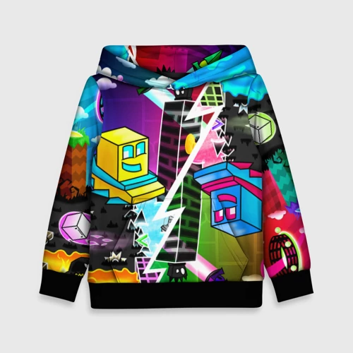 Geometry Dash neon levels smile 👕 Детская толстовка 3D