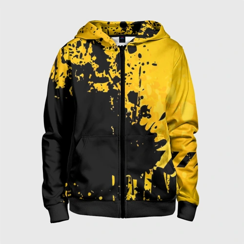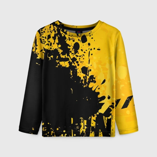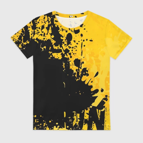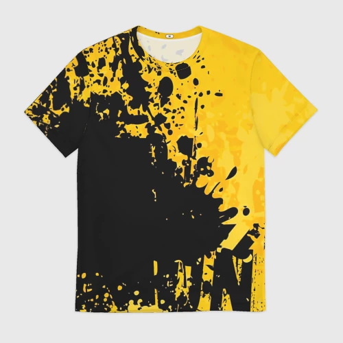 Пятна черной краски на желтом фоне 👕 Детская футболка 3D