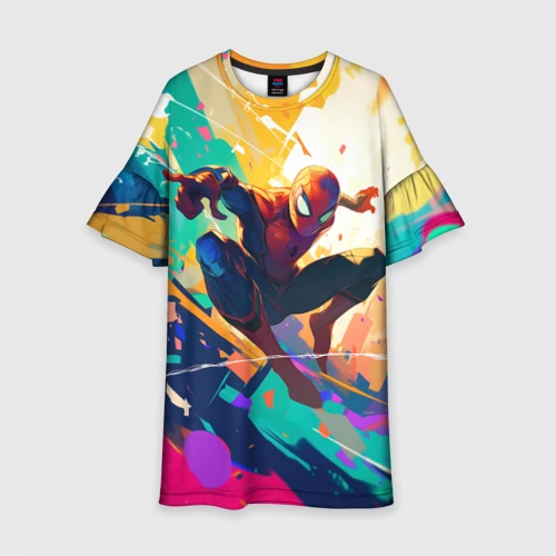 Человек-паук на ярком фоне 👕 Детская футболка 3D