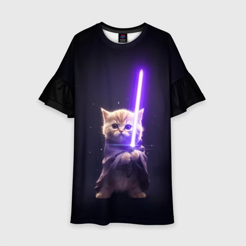 Котик джедай 👕 Детская футболка 3D