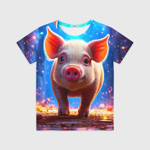 Свинья и разряды молний 👕 Детская футболка 3D