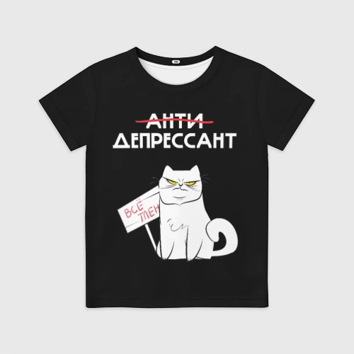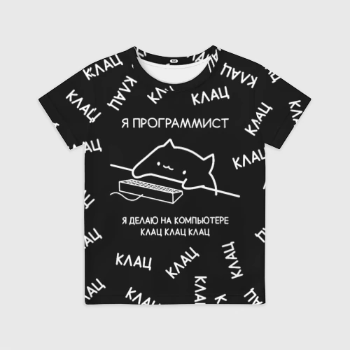 Котик кушает мем 👕 Детская футболка 3D