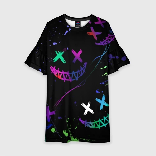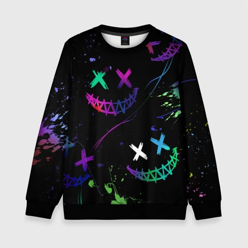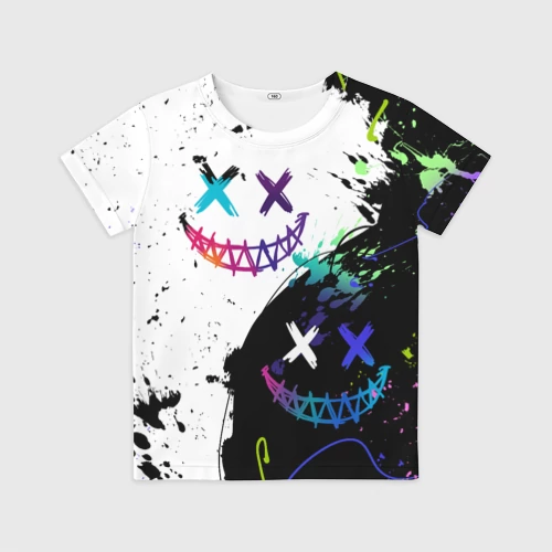 Неновые краски - лица крипи смайл 👕 Детская футболка 3D