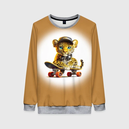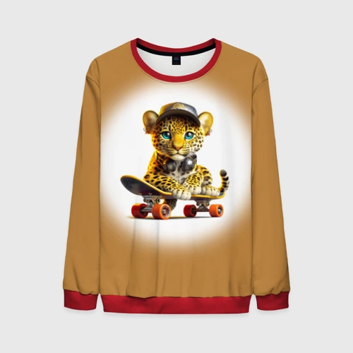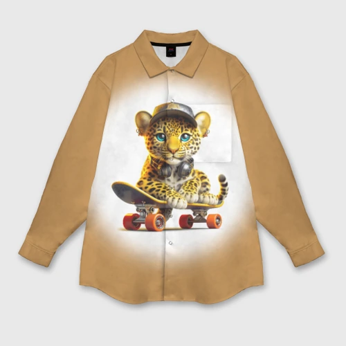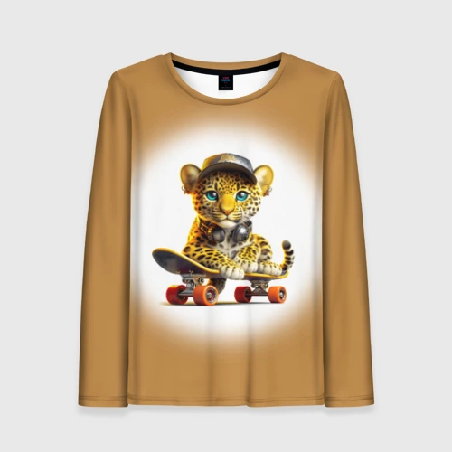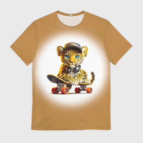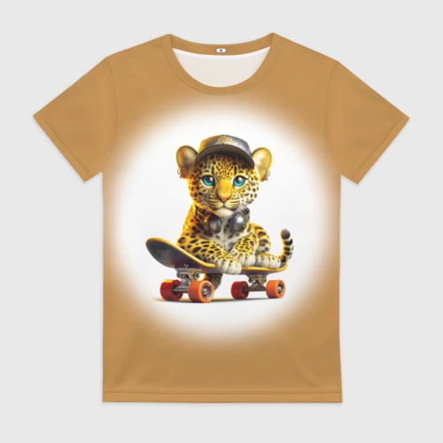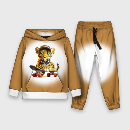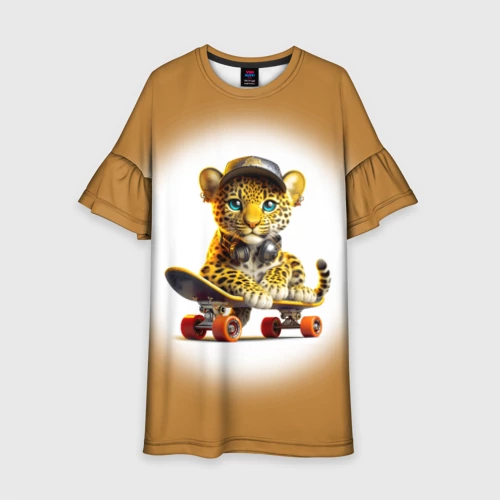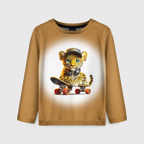 Детёныш леопарда крутой скейтбордист 👕 Детская футболка 3D
