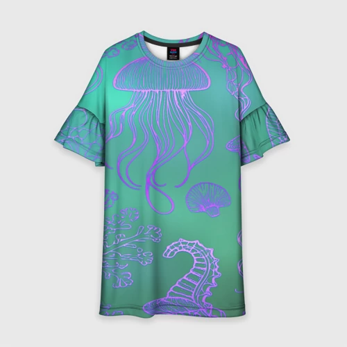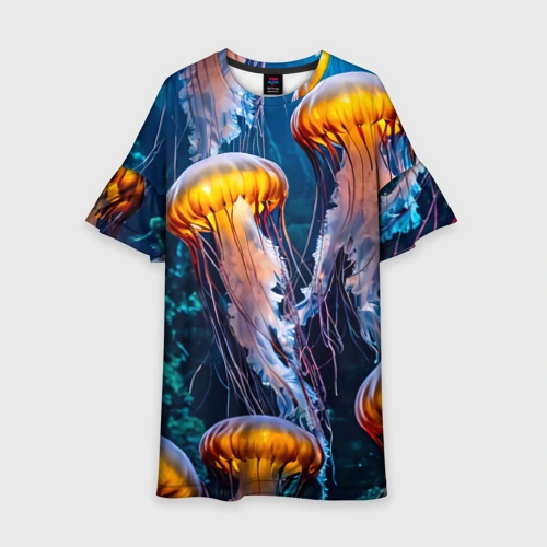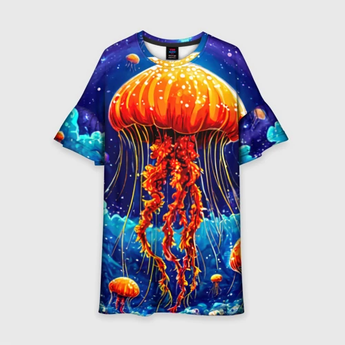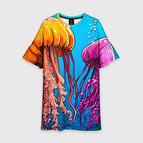 Розовая медуза 👕 Детское платье 3D