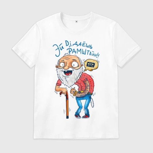Эй Dj, даешь Рамштайн - дедушка 👕 Мужская футболка хлопок Slim