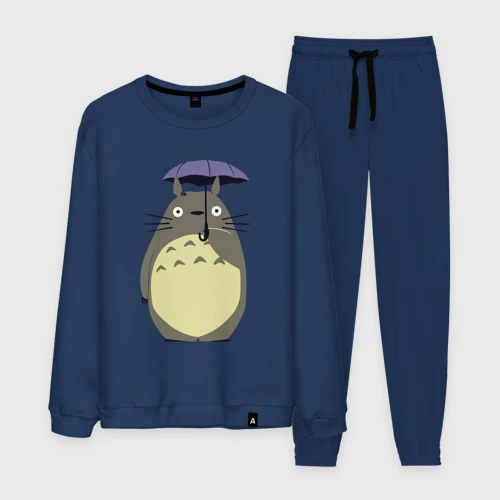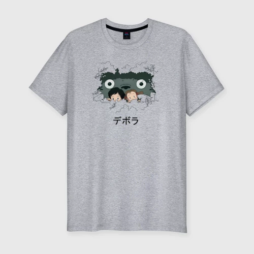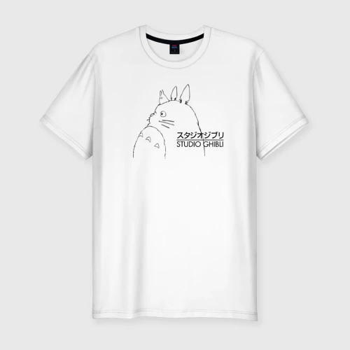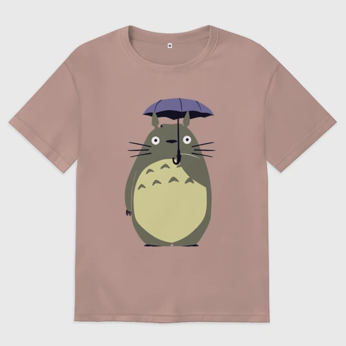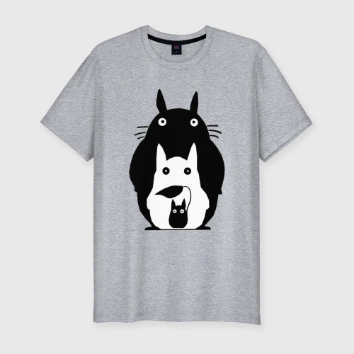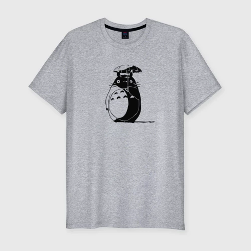 Тоторо под зонтом 👕 Мужская футболка хлопок Slim