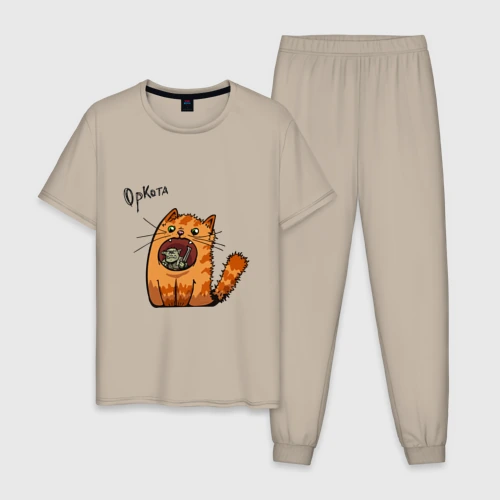 Оркота или орк и кот мем кричит 👕 Мужская футболка хлопок Slim