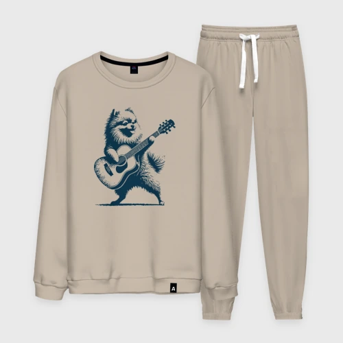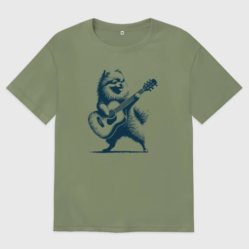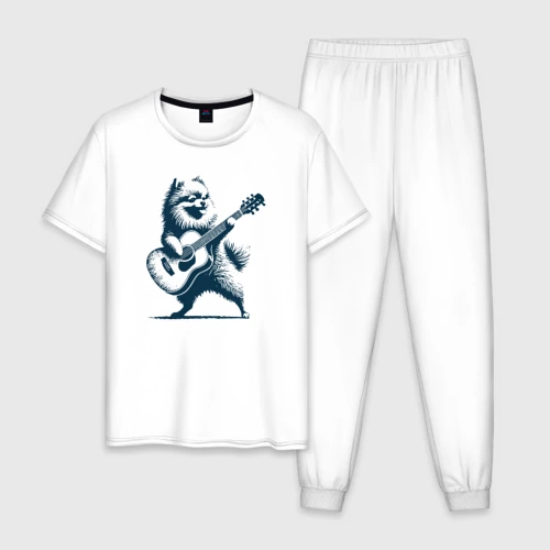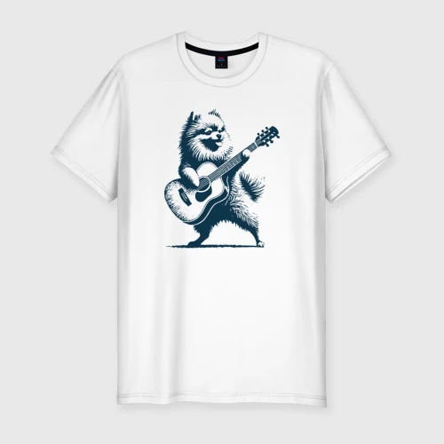 Шпиц играет на гитаре укулеле 👕 Мужская футболка хлопок