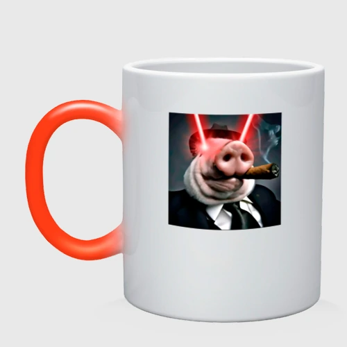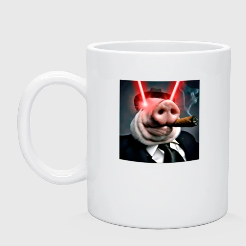 Свинья гангстер жестко стреляет лазерами из глаз 👕 Мужская футболка хлопок