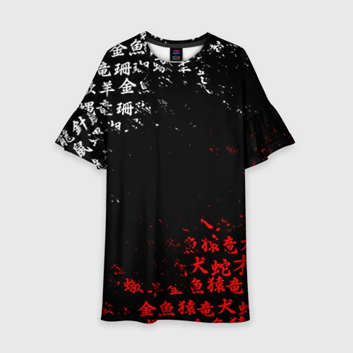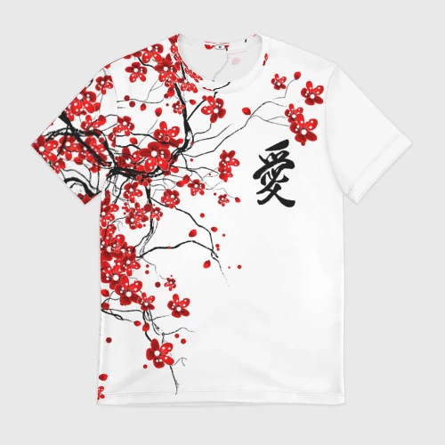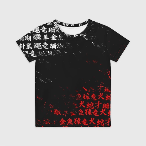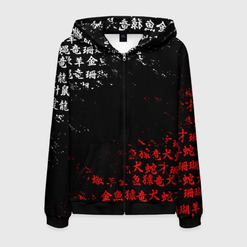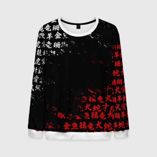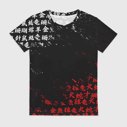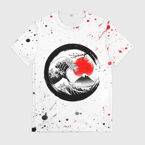 Красно белые иероглифы Япония брызги 👕 Мужская футболка 3D