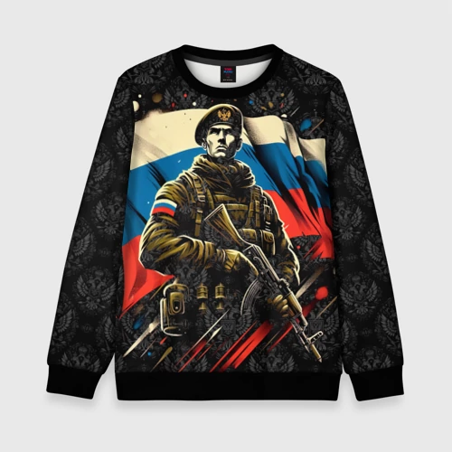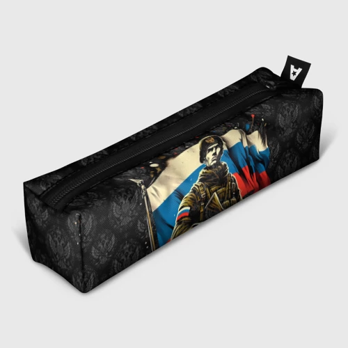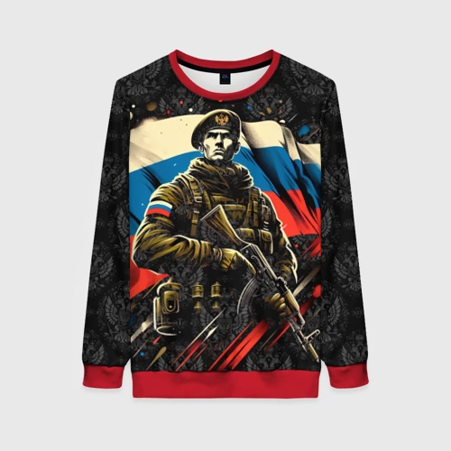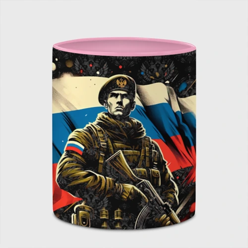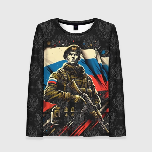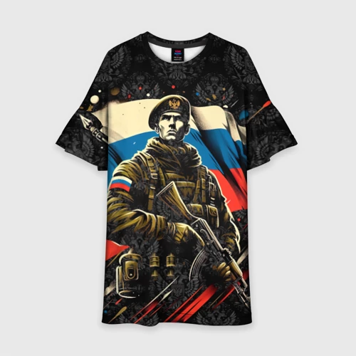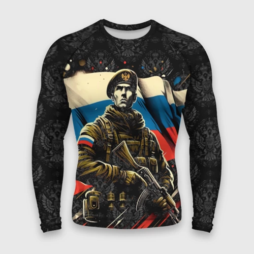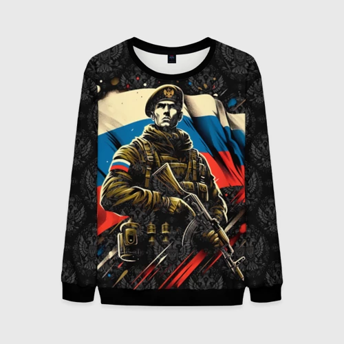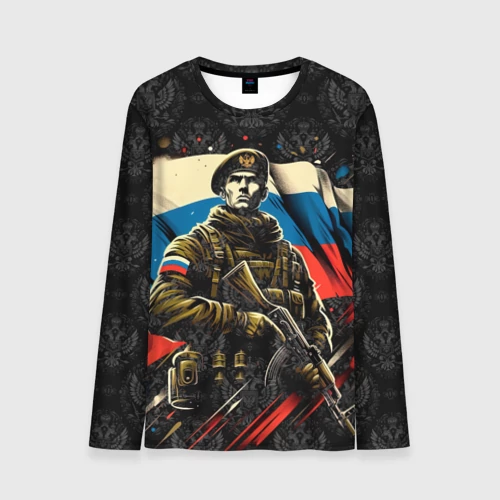 Русский солдат на фоне флага России 👕 Мужская футболка 3D