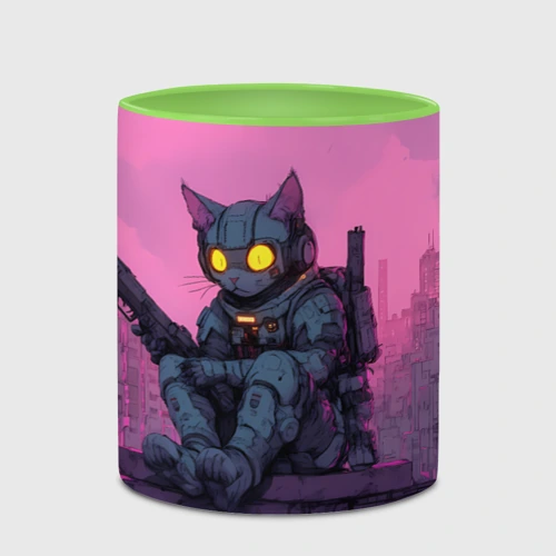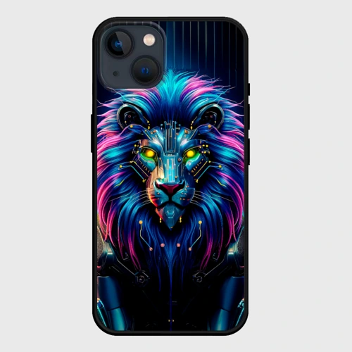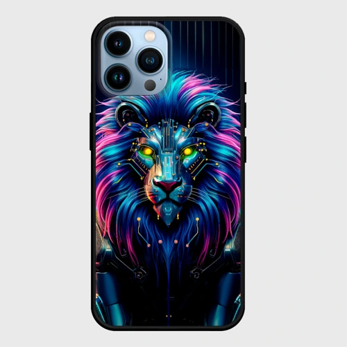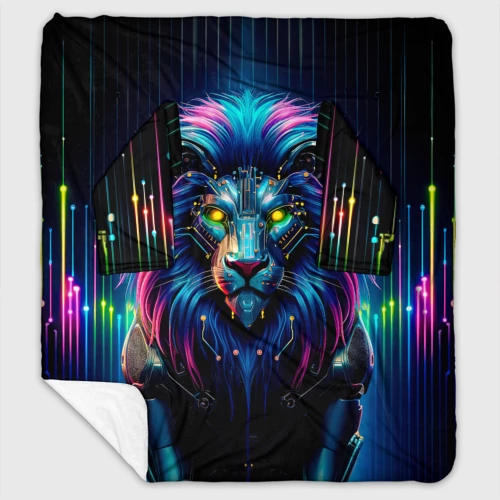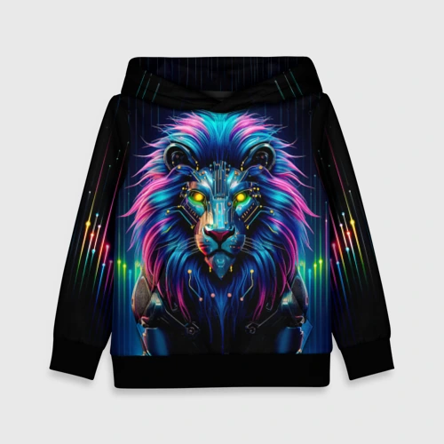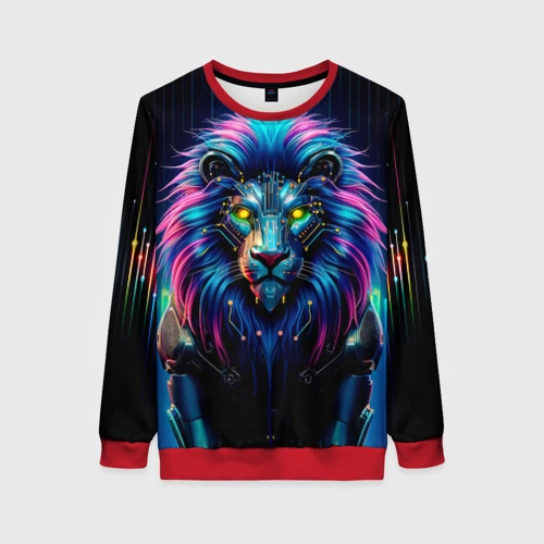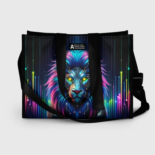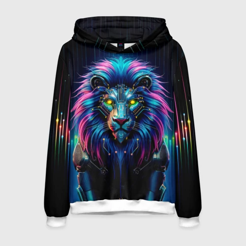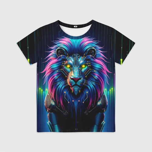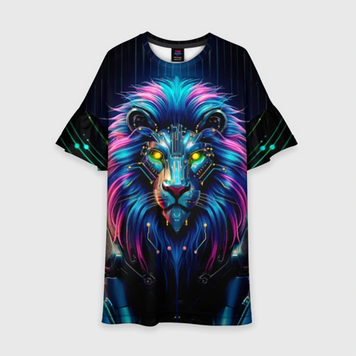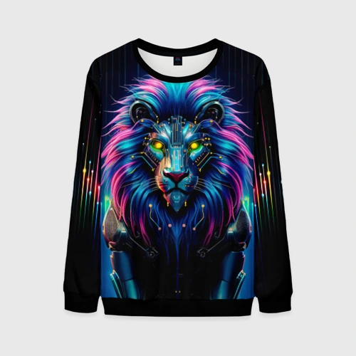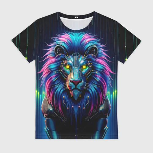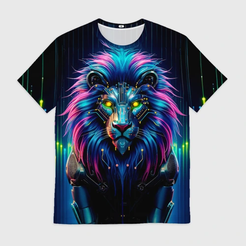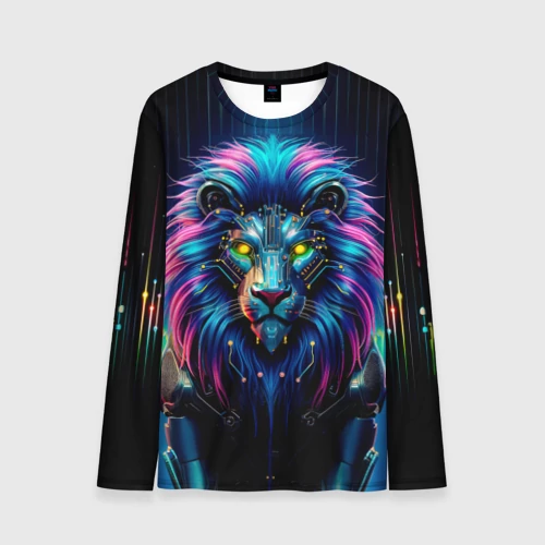 Неоновый лев в стиле киберпанк 🍵 Кружка с полной запечаткой