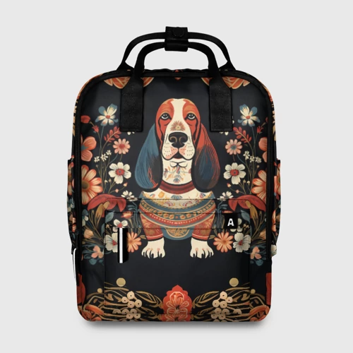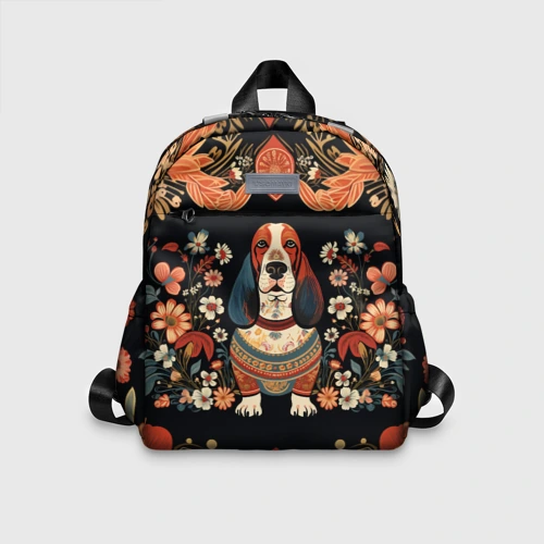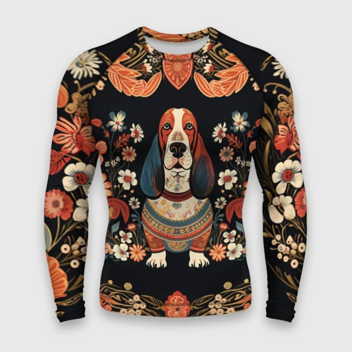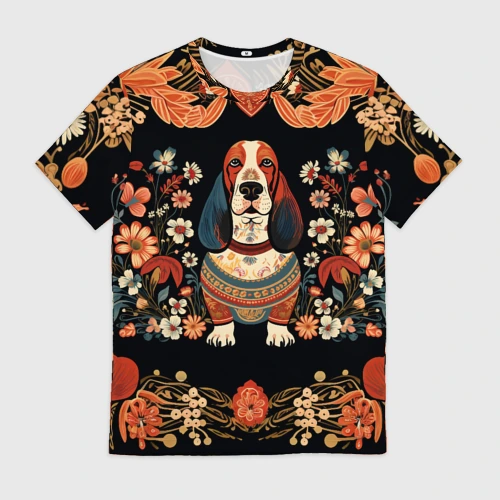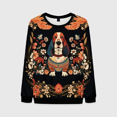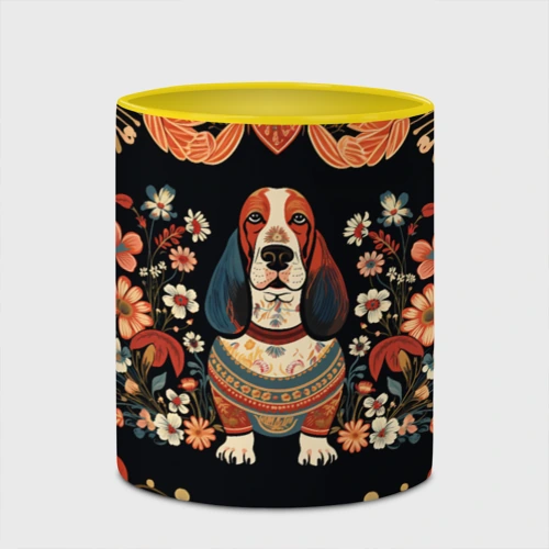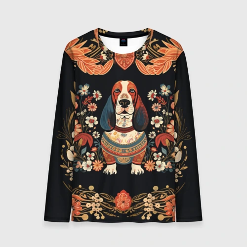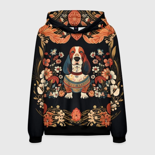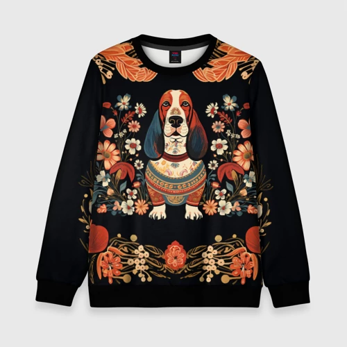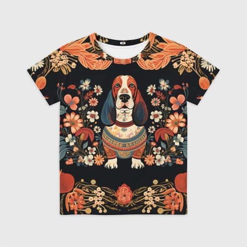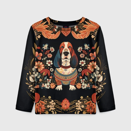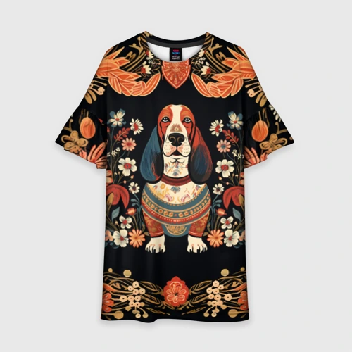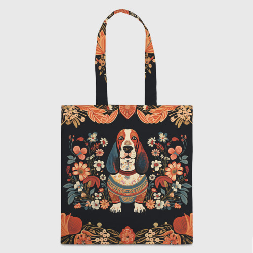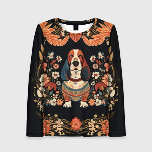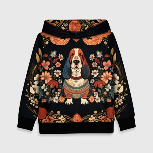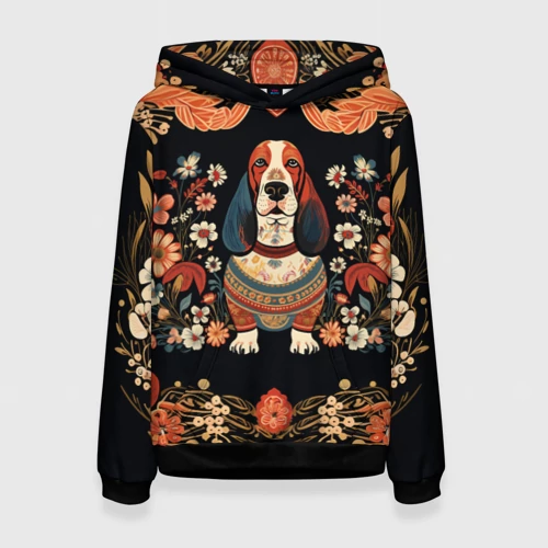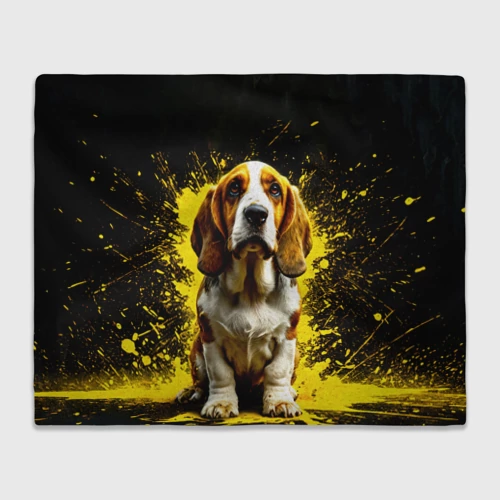 Бассет-хаунд в стиле Фолк Арт 🎒 Плед 3D