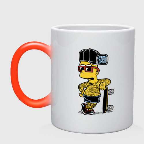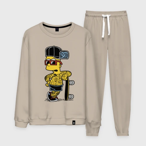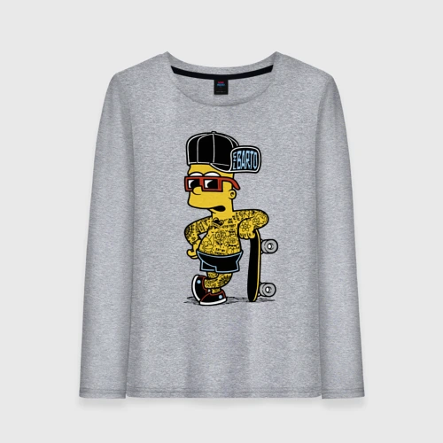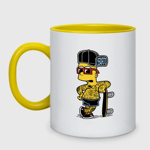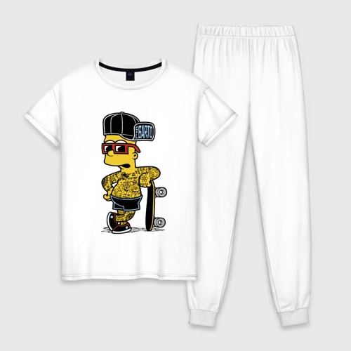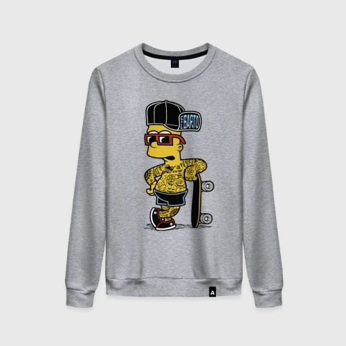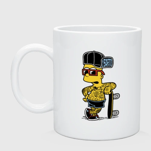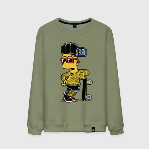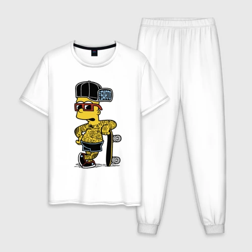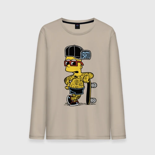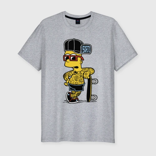 Скейтер Барт Симпсон весь в татухах 👕 Мужская футболка хлопок Oversize