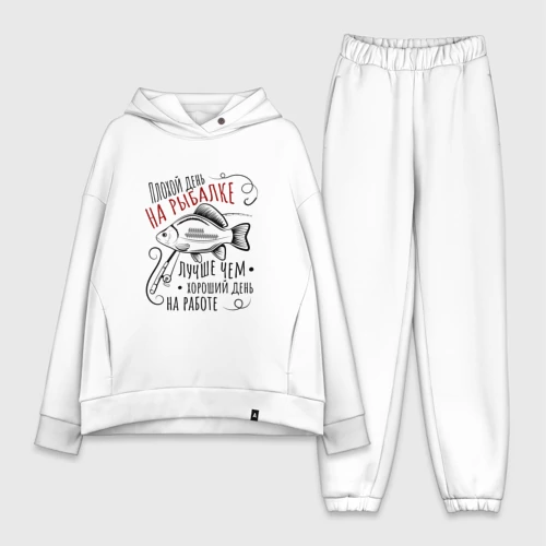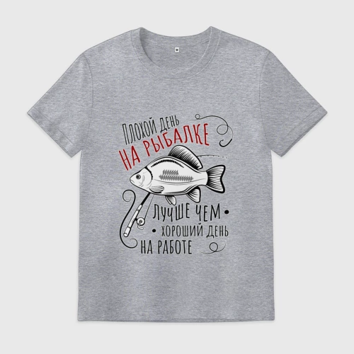Большой карась и цитата про рыбалку для рыбака 👕 Мужская футболка хлопок Oversize