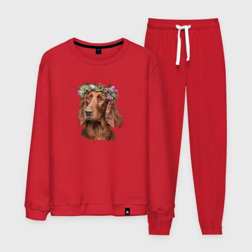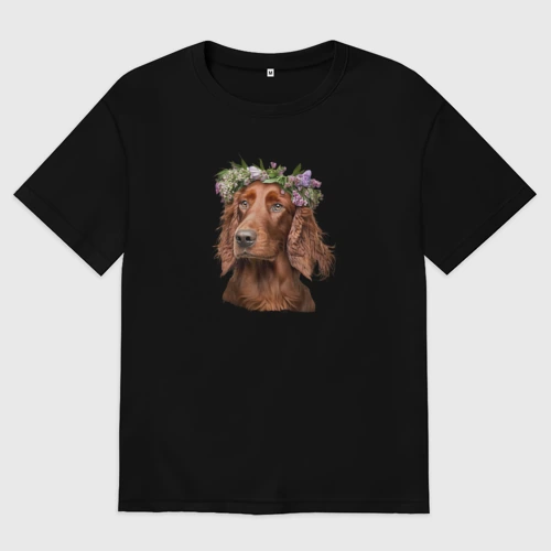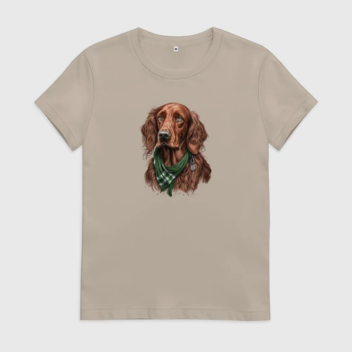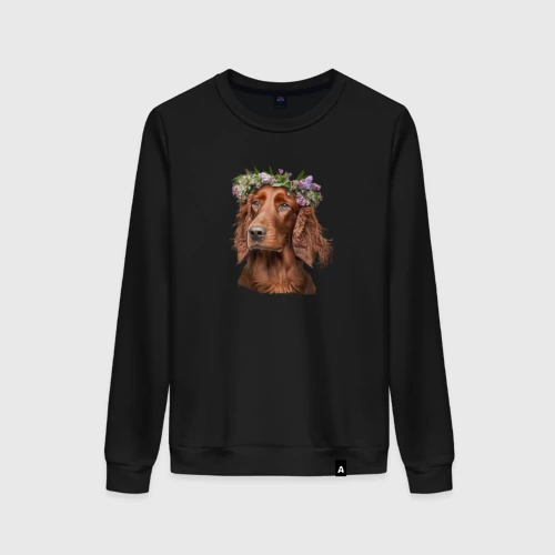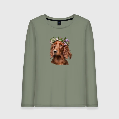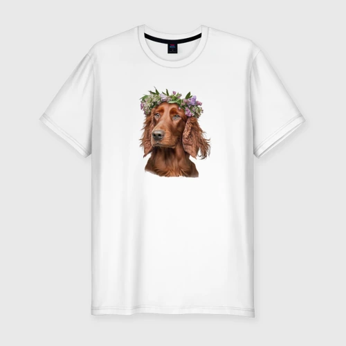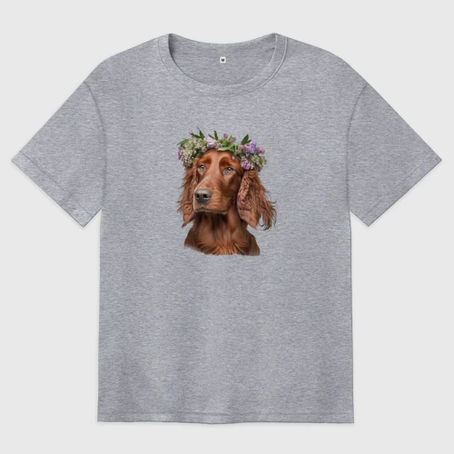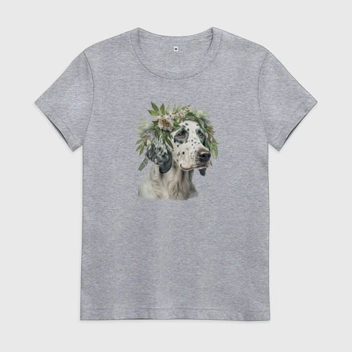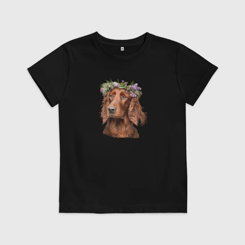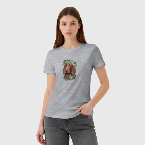 Ирландский сеттер в венке из цветов 👚 Женская футболка хлопок