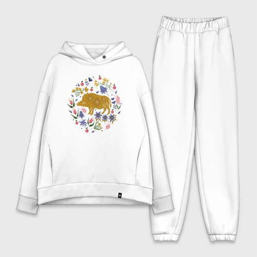 Кабан травы цветы👚 Женская футболка хлопок