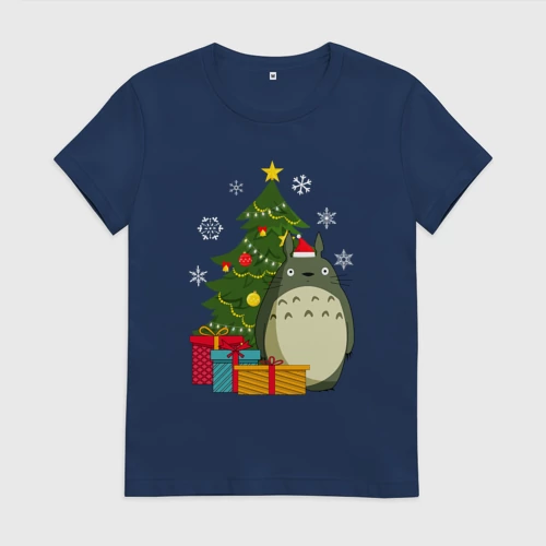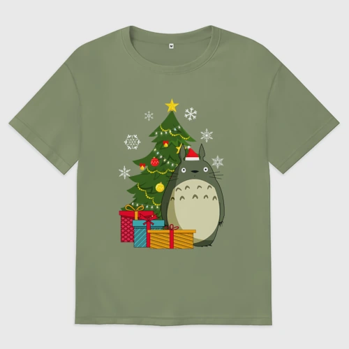 Тоторо новогодний 👚 Женская футболка хлопок Oversize