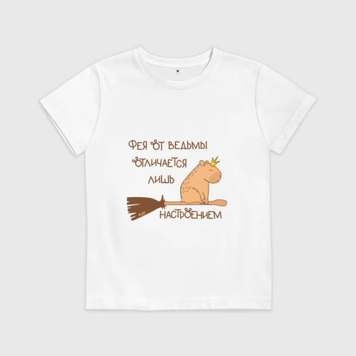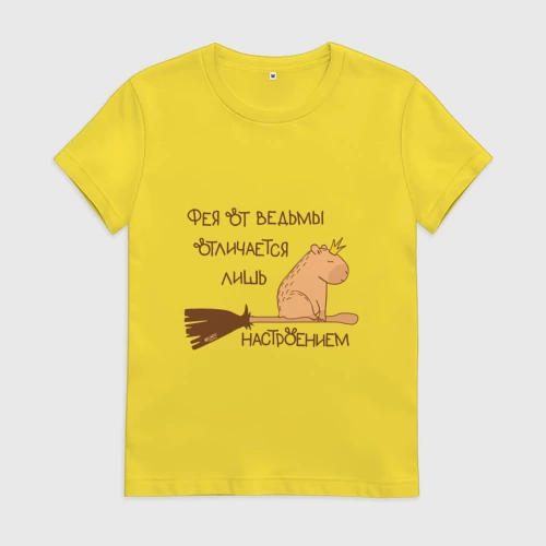 Мем капибара на метле: фея и ведьма 👚 Женская футболка хлопок Oversize