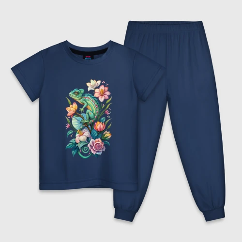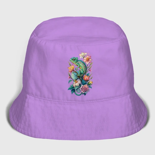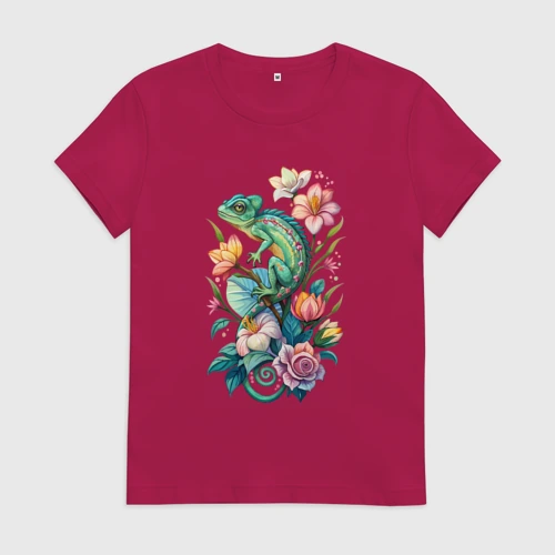 Зеленый хамелеон среди цветов 👚 Женская футболка хлопок Oversize