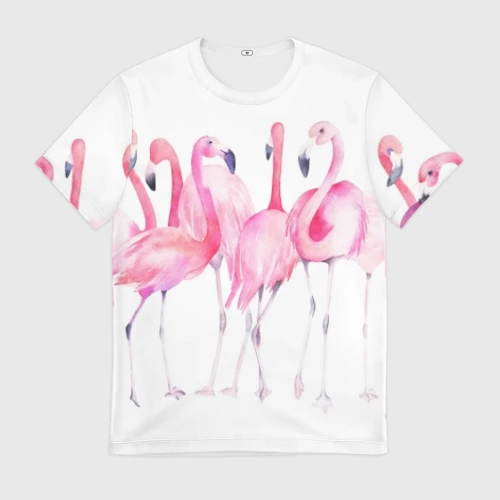 Фламинго розовый на белом 👚 Женская рубашка oversize 3D